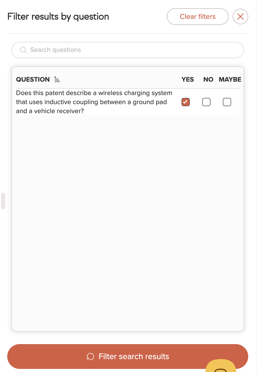 Now click the filter icon on the Ask Amplified column and select Yes — instantly surfacing only the patents that match your specific question.